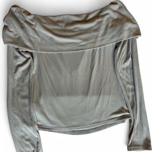 Stylish off-shoulder ribbed top. Perfect for casual outings. Light gray off-the-shoulder top - women size Medium - very cute comfy fit - stretchy material if needed