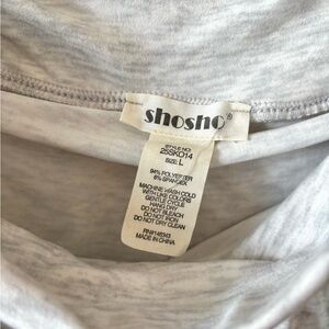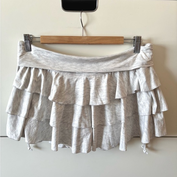Grey ruffle skirt with fold over. The sides have adjustable bows to tie. Size L but more of an M. Never worn. Smoke-free home.