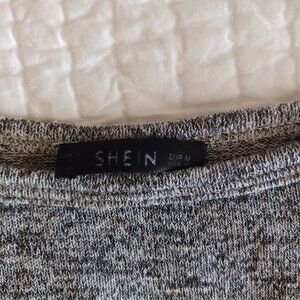 Light Gray Sweater Long Sleeve w/ Open Lace Cross Sleeve SHEIN Womens M