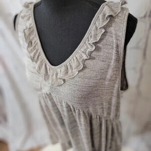 Light Gray V-neck Ruffle Hem Lightweight Womens Summer Tank L