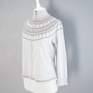 Light Gray Woolrick Merino Wool Ice Skating Mock Neck Skii Sweater Size Large