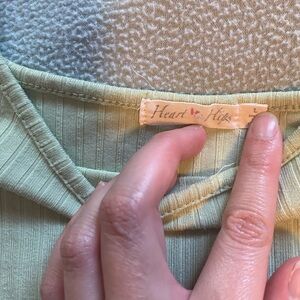 Pastel / Sage Green Ribbed Scoop Neck Crop Tank. Tillys x heart & hips Size large Bust: 15” Length: 17.5” GUC: no noticeable flaws