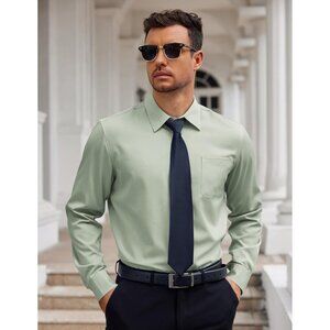 Light Green Mens Dress Long Sleeve Button Down Wrinkle Free Shirt with Pocket