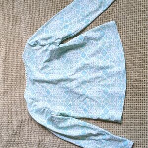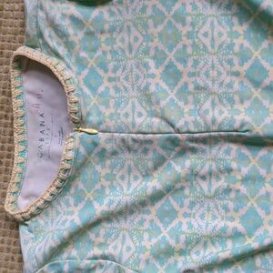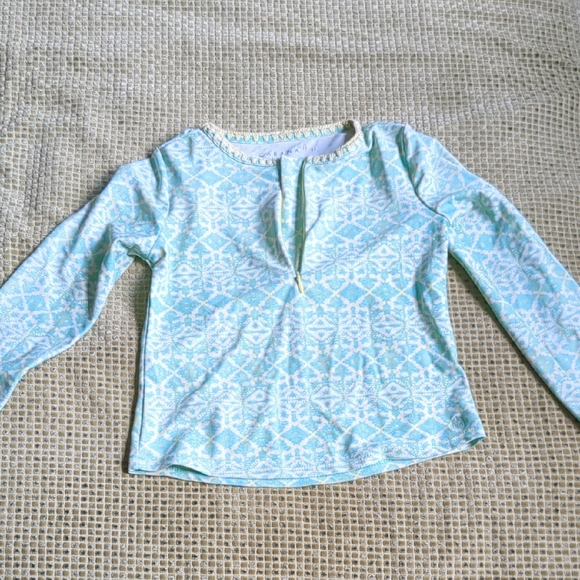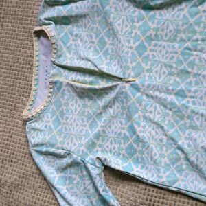 Aqua/light green rash guard with embroidered neckline detail. zipper at neck. Great condition