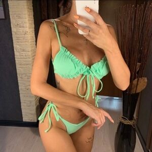 Light Green Ruched Top and Brazilian Bottom Bikini Set