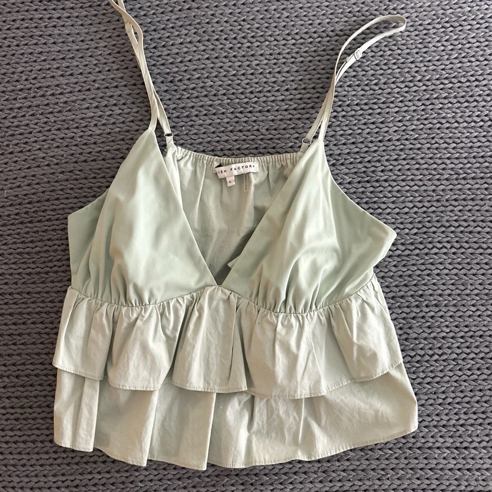 Light Green Ruffled Spaghetti Strap Top