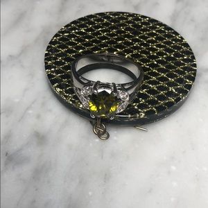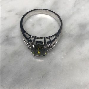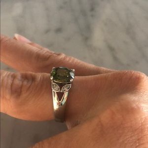 Silver and green ring
