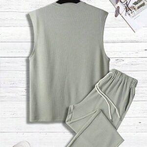 Light Grey Casual Mens Solid Tank Top & Drawstring Waist Pants