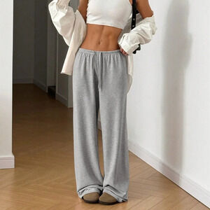 Light Grey Casual Women's Soft Knit Loose Fit Trousers