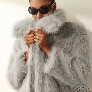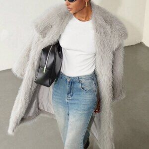 Light Grey Elegant Women's Oversized Faux Fur oversized Coat jacket