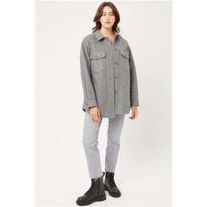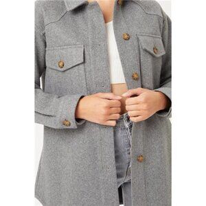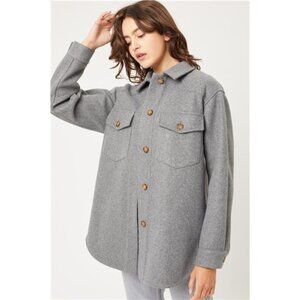 Light Grey Jq Fleece Oversized Cozy Warm Shacket For Women/ Front Button Closure