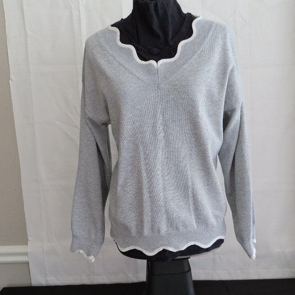 Light Grey Lightweight Sweater with Scalloped Detailing - MISSLOOK (L) β§