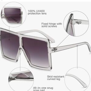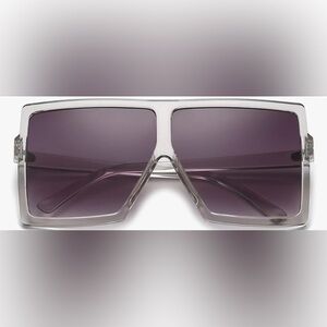 Light Grey Square Oversized Sunglasses UNISEX Flat Top Fashion Shades 0107