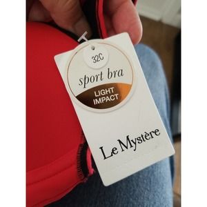 Light Impact Sports Bra Size 32C Women's Le Mystere Wire free US Black/Red New