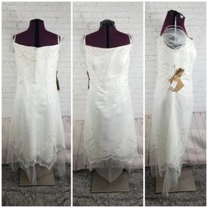 " Light In The Box " brand new with tags still attached never worn beautiful wedding or special occasion dress. This dress has beautiful Ivory embroider stitching with tiny pearls and clear beading design on top and bottom of the dress.