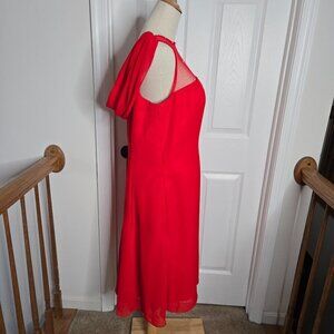 Light In The Box Ruby Red Sheer Top Pearls Sleeveless Midi Evening Dress Sz 16W