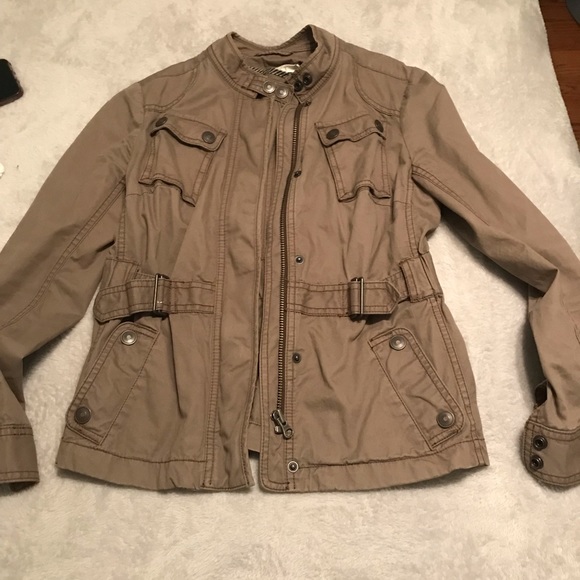 LOFT Jacket in a hushed brown that adds layer to any outfit Has a cinched look in the back.