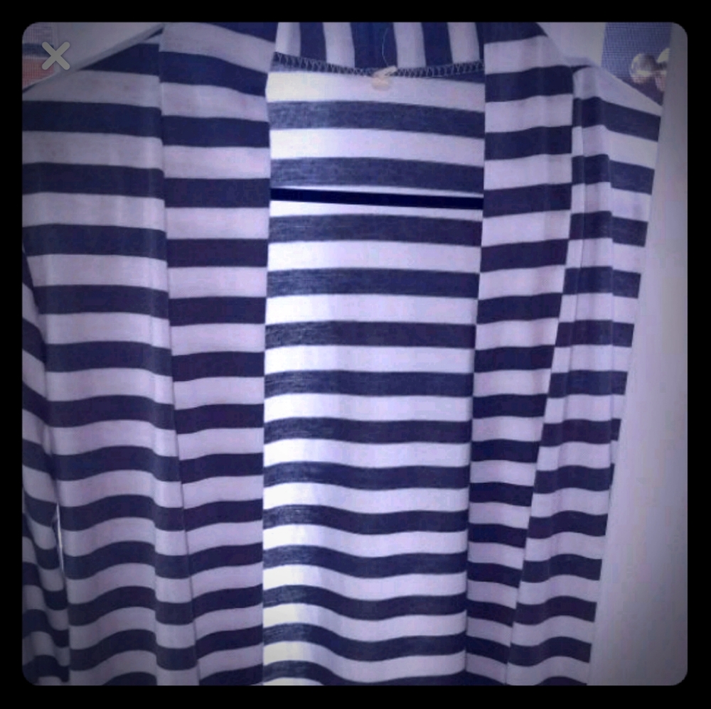 White with Evergreen Stripes, brown suede elbow, light jacket, used, only worn once.