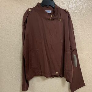 Fiery Brown Light Jacket with gold detail.