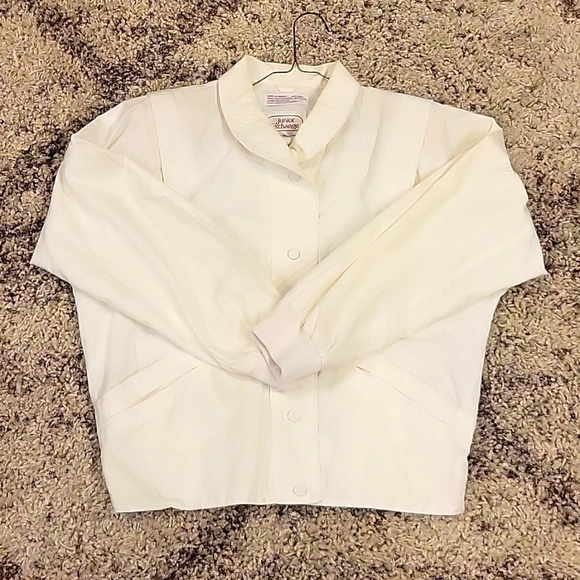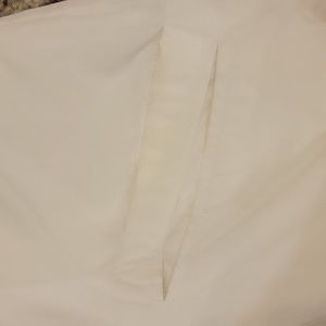 Two small imperfections seen in last 2 photos. 1st on collar. 2nd on the backside of the left sleeve. May come out if treated.