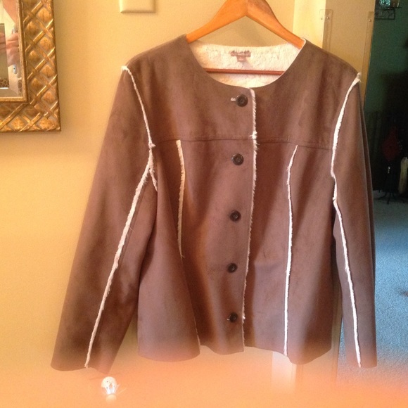 Dusty brown light suede jacket for Fall. Liner is very soft and plushy to keep you warm on those chilly fall days while being stylish. 2 pockets.