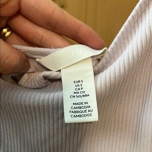 Stylish light lavender ribbed bodysuit from H&M. It has a low back that’s so flattering with jeans or a skirt for the summer time. The straps are non-adjustable. I’ve only worn it once.