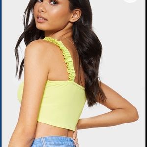 Light Lime Rib Ruffle Detail Crop