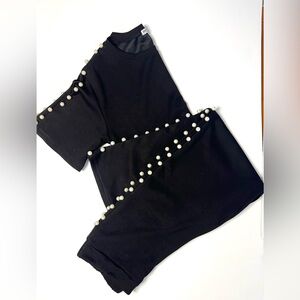 Light Lyocell Black Wide-Leg Pearl Pants & Matching Top – Size Medium
