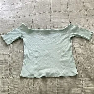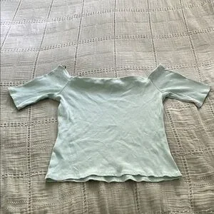 Off the shoulder Soft ribbed off-shoulder top in a light mint green shade. Short sleeves with a fitted silhouette. Stretchy and comfortable fabric. Great for layering or wearing alone.