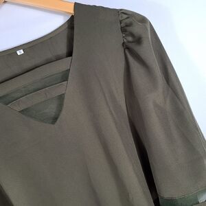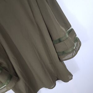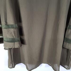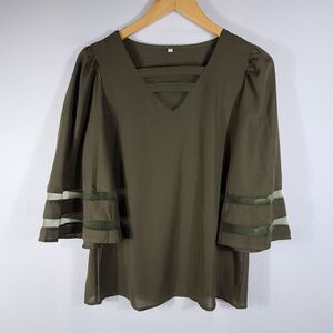 Light Olive V-Neck Mesh-Stripe Bell Sleeve Top
