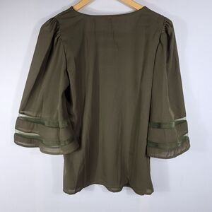 Light Olive V-Neck Mesh-Stripe Bell Sleeve Top - Women