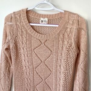 Light Peach Knit Long Sleeve Sweater by Pink Rose in Medium Cotton Blend