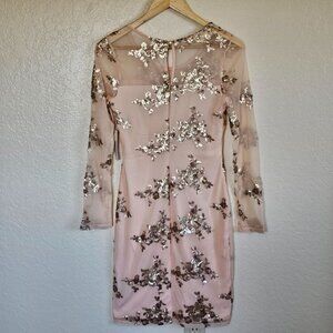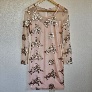 Light Peach Long-Sleeve Sequin Floral Mesh Dress Bailey Blue Size M