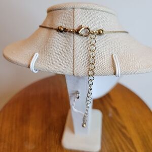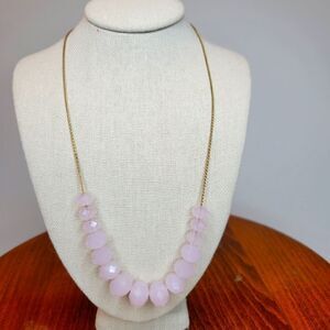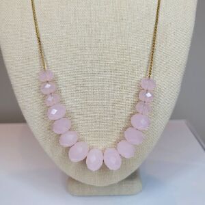 Light Pearlescent Pink Crystal Glass Faceted Beaded Dainty Gold Tone Necklace