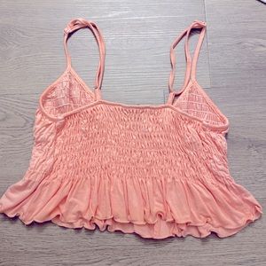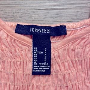 This light pink ruffled tank top from Forever 21 has spaghetti straps that are adjustable. It is barely worn and ruffled making it fun for summer.