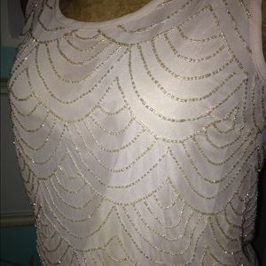 Super cute bead detailed tank top with scallop trim at the bottom. Has sheer cover but can not see through. Love it so much but it doesn't fit anymore:(