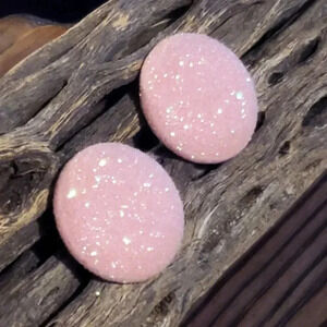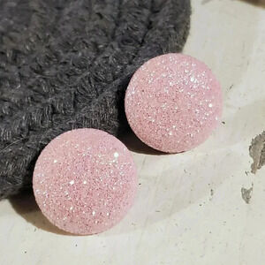 Light Pink Fabric Button Earrings Retro 80s Club Glam Disco Sparkly
