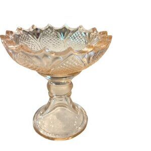 Light Pink Glass CANDY DISH / CANDLE HOLDER Cottagecore Farmhouse 4.5" Tall EUC