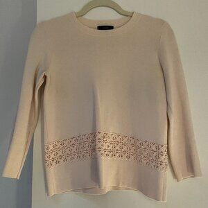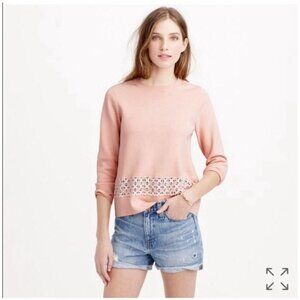 Very light pink, J Crew Sweater with eyelet detail at the bottom. Excellent Condition