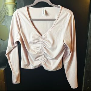 Comfortable light pink jogger pants with an elastic waistband and drawstring sold with ruched athletic top. Brand is All in Motion Perfect for casual wear.