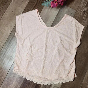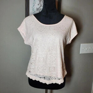 Light Pink Lace Cap Sleeve Women's Blouse Top Size Small