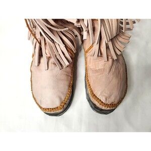 Light Pink Leather Boots & Fur Moccasins Fringes Navajo Southwestern Native 10