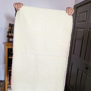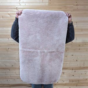 Light pink plush rubber back bath mat, good used condition, 24” x 40”, fold marks from storage, pet friendly smoke free home