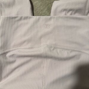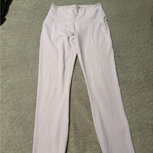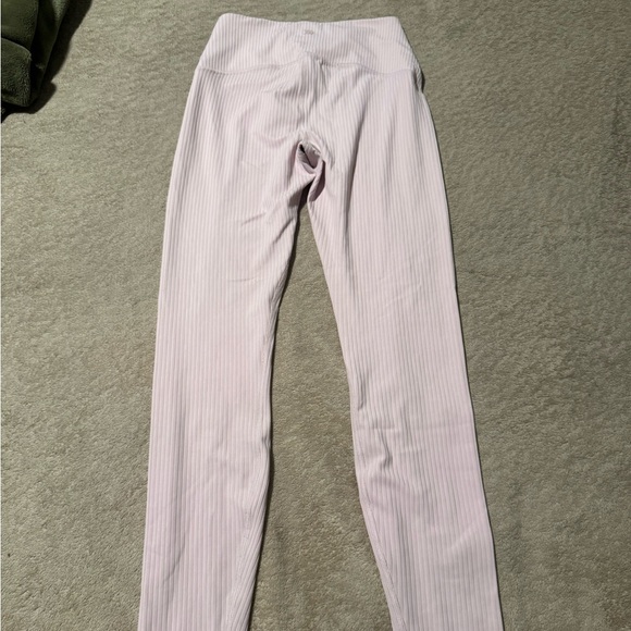 Stylish light pink ribbed leggings. Perfect for casual wear.