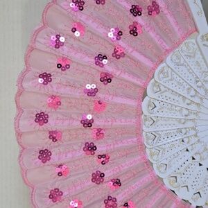pink pastel sequin hand fan casual dressy wedding party picnic church