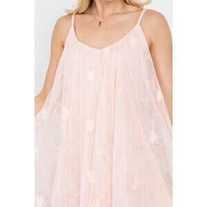 Light Pink Spaghetti Sleeve Floral Lace Dress