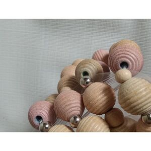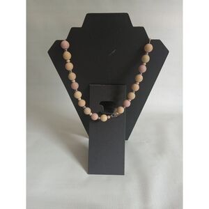 Light Pink and Tan Round Ribbed Wooden Beaded Lightweight Single Strand Necklace