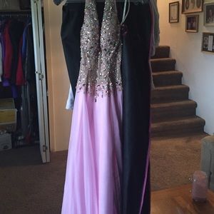Light pink halter formal dress only been worn once. PERFECT CONDITION! Has been altered around chest and on the bottom. Priced at 250$ but will negotiate.