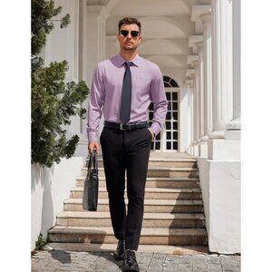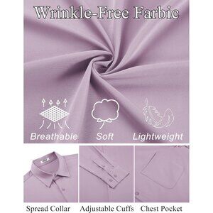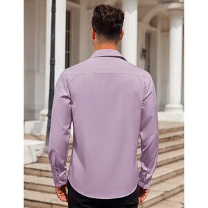Light Purple Mens Dress Long Sleeve Button Down Wrinkle Free Shirt with Pocket