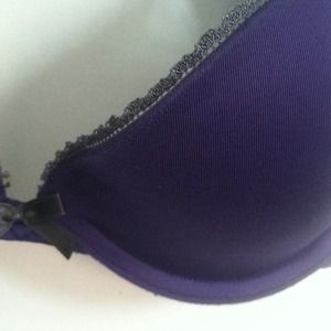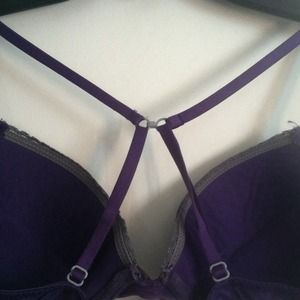 Lightly laced over cup, subtle push up, and has hook for racer back. 36A.